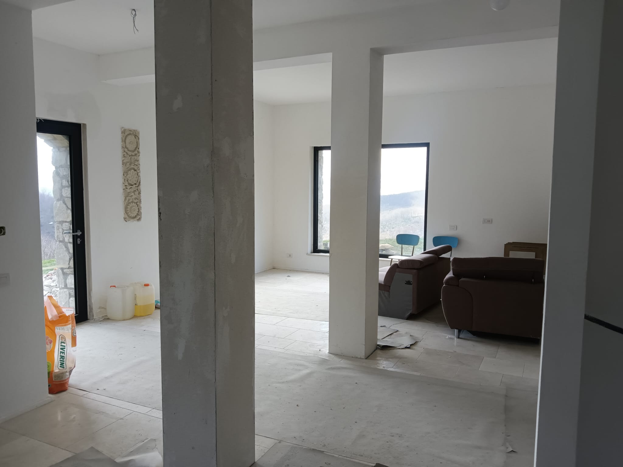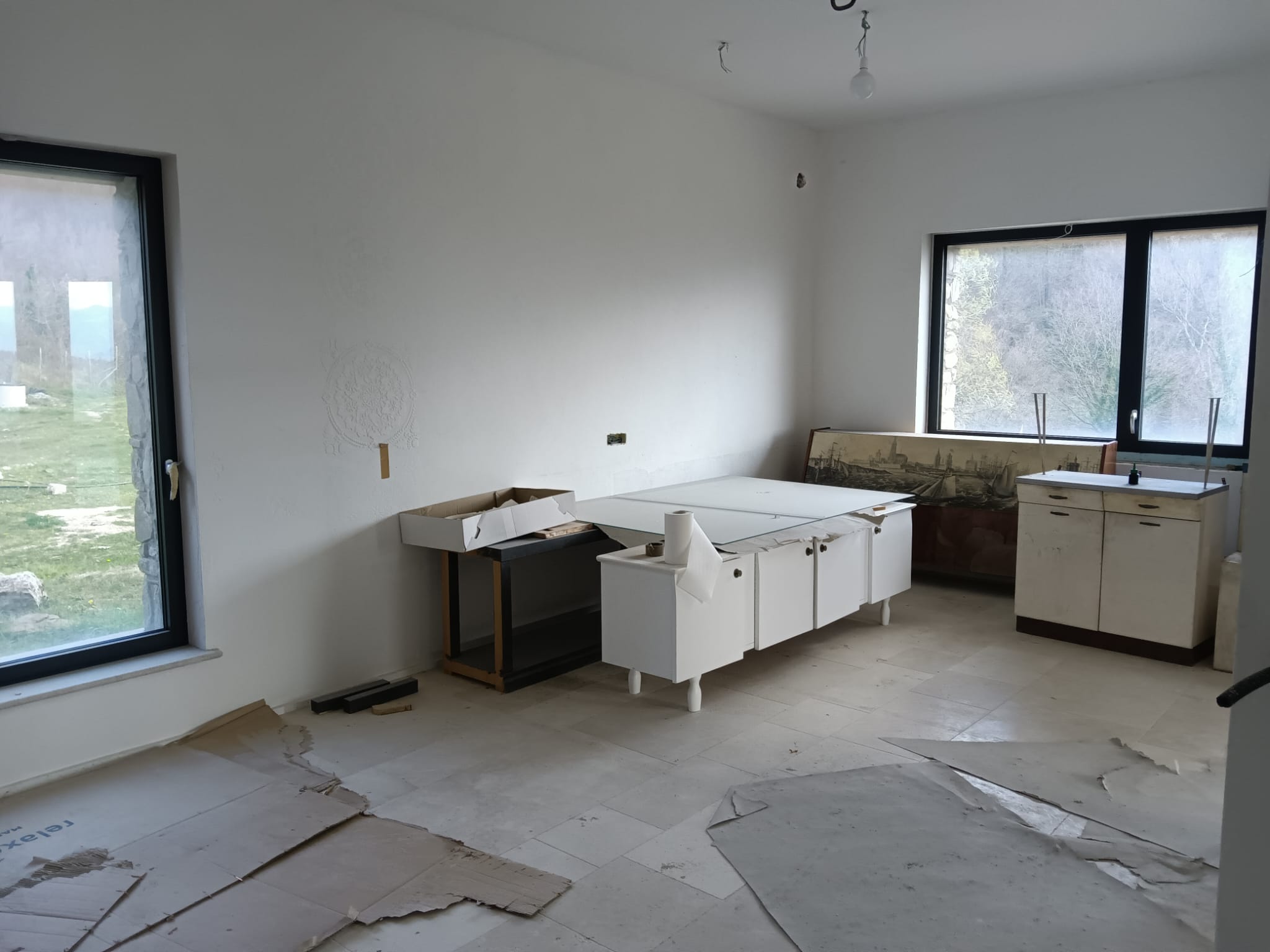 - Cucina/salone open space con grandi finestroni che regalano luce naturale e vista sul verde